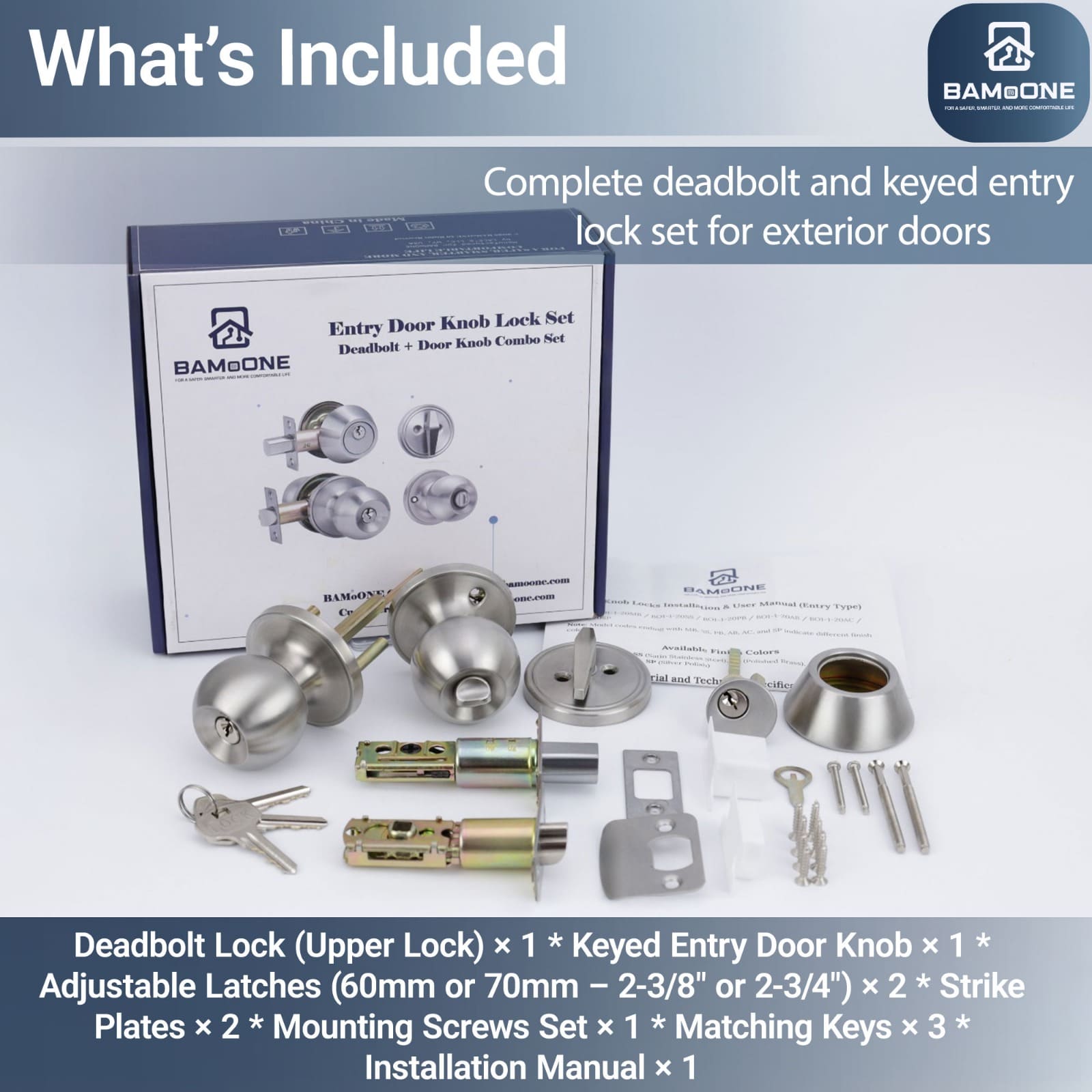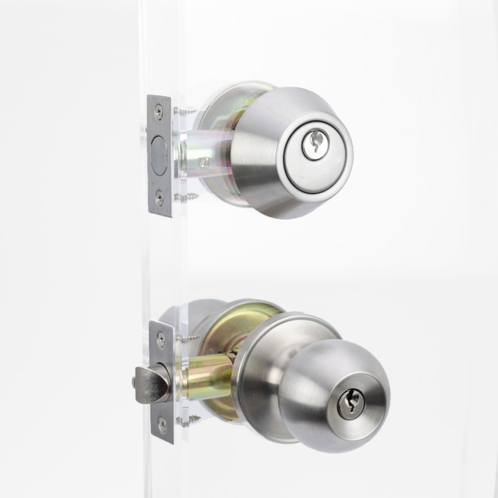 Açarla kilidlənən qapı kilidi kombin dəsti yüksək təhlükəsizlik tələb olunan məkanlar üçün nəzərdə tutulmuş möhkəm və etibarlı qapı sistemidir. Dəstə yuxarı hissədə deadbolt tipli əlavə kilid, aşağı hissədə isə açarla idarə olunan qapı dəstəyi daxildir. Bu kombinasiya giriş və arxa qapılar, qaraj girişləri və ofis qapıları üçün gücləndirilmiş qoruma təmin edir. Möhkəm metal konstruksiyası uzunömürlü istifadə imkanı yaradır, satin xrom örtüyü isə interyer və eksteryerə müasir və zərif görünüş bəxş edir. Asan quraşdırılır və standart xarici qapılarla uyğundur.