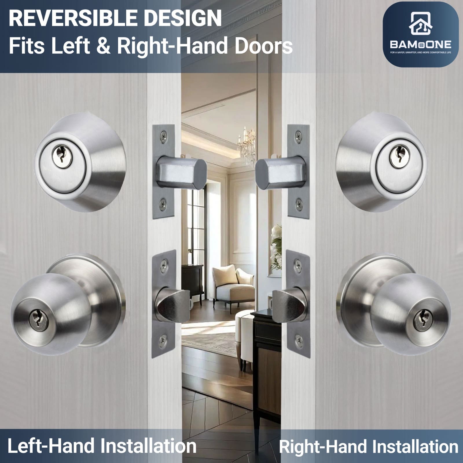 Açarla kilidlənən qapı kilidi kombin dəsti yüksək təhlükəsizlik tələb olunan məkanlar üçün nəzərdə tutulmuş möhkəm və etibarlı qapı sistemidir. Dəstə yuxarı hissədə deadbolt tipli əlavə kilid, aşağı hissədə isə açarla idarə olunan qapı dəstəyi daxildir. Bu kombinasiya giriş və arxa qapılar, qaraj girişləri və ofis qapıları üçün gücləndirilmiş qoruma təmin edir. Möhkəm metal konstruksiyası uzunömürlü istifadə imkanı yaradır, satin xrom örtüyü isə interyer və eksteryerə müasir və zərif görünüş bəxş edir. Asan quraşdırılır və standart xarici qapılarla uyğundur.